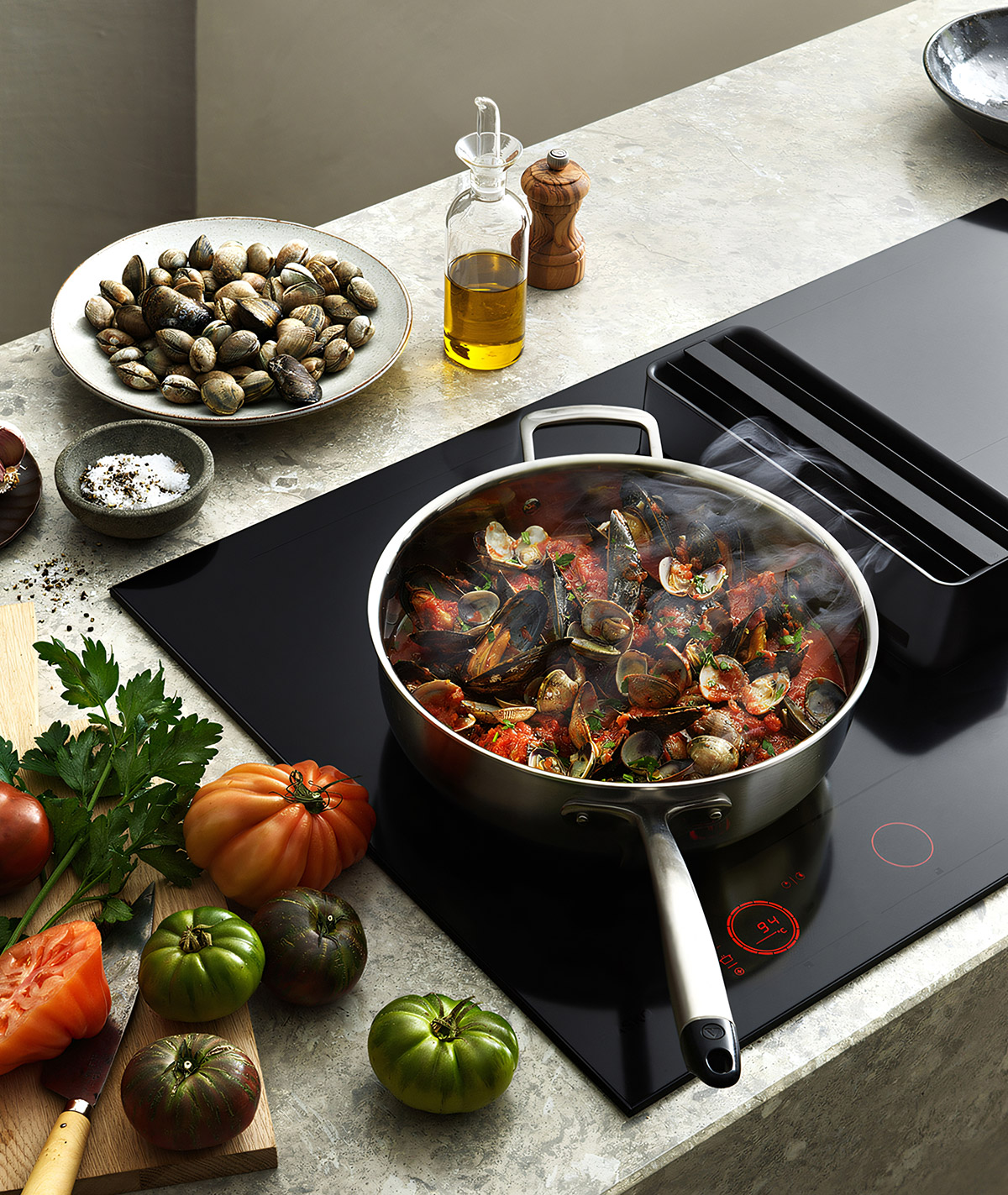 Kiest u voor een inductie kookplaat? Dan is het ook mogelijk om te kiezen voor een variant waarbij de afzuiging is geïntegreerd. Zo hoeft u geen losse afzuiging boven de kookzone te plaatsen en kijkt u niet tegen een afzuigsysteem aan in uw keuken. Wilt u hier meer over weten? Bekijk dan de pagina over afzuigsystemen in de keuken.