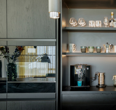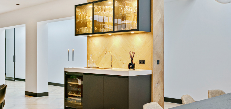 Een pantry keuken is handig als de reguliere keuken zich niet op dezelfde verdieping als de woonkamer bevindt. Of als u bijvoorbeeld een grote leefruimte heeft waar de keuken zich aan de ene kant van de ruimte bevindt en u bijvoorbeeld een sfeervolle barfunctie wilt toevoegen bij het zitgedeelte aan de andere zijde van de woning.