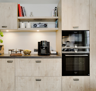 Is de wens er om er een minikeuken van te maken? Overweeg dan of het mogelijk is om te kiezen voor een (onderbouw)koelkast, vaatwasser, magnetron of oven en spoelbak met keukenkraan. Zo heeft u alles bij de hand. Van koelen tot opwarmen.
