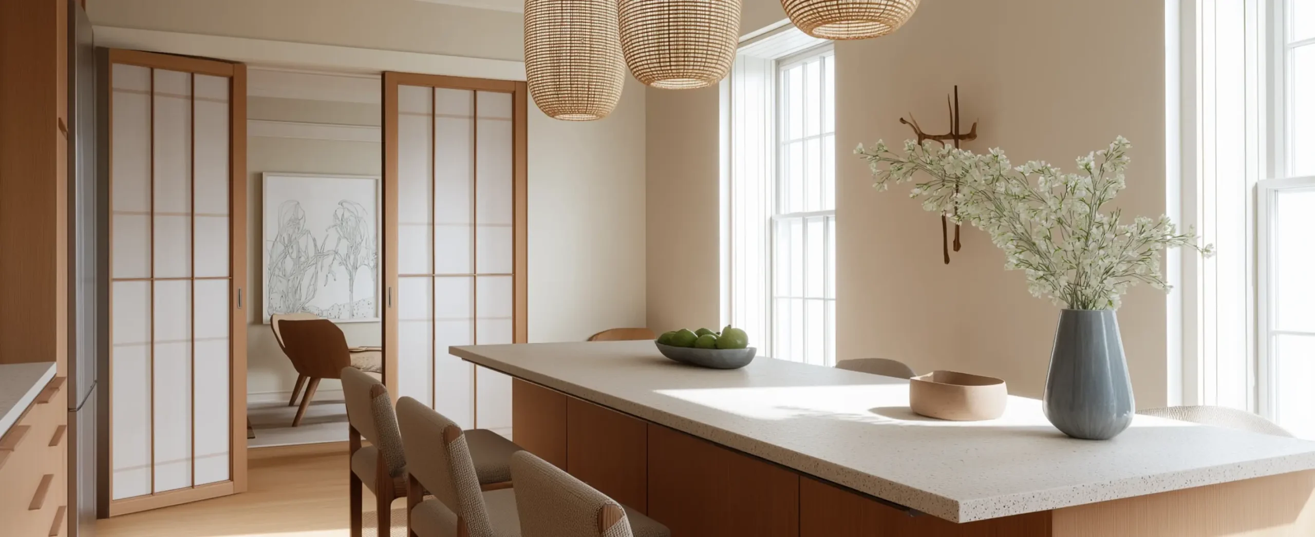 Een Japandi keuken is een perfecte samensmelting van Scandinavische rust en gezelligheid met de verfijning en eenvoud van Japanse designprincipes. Het resultaat is een ruimte die zowel warm als minimalistisch aanvoelt. Natuurlijke materialen en neutrale kleuren spelen hierin een cruciale rol. Denk aan hout, bamboe, en natuursteen, die allemaal bijdragen aan een warme en serene sfeer.