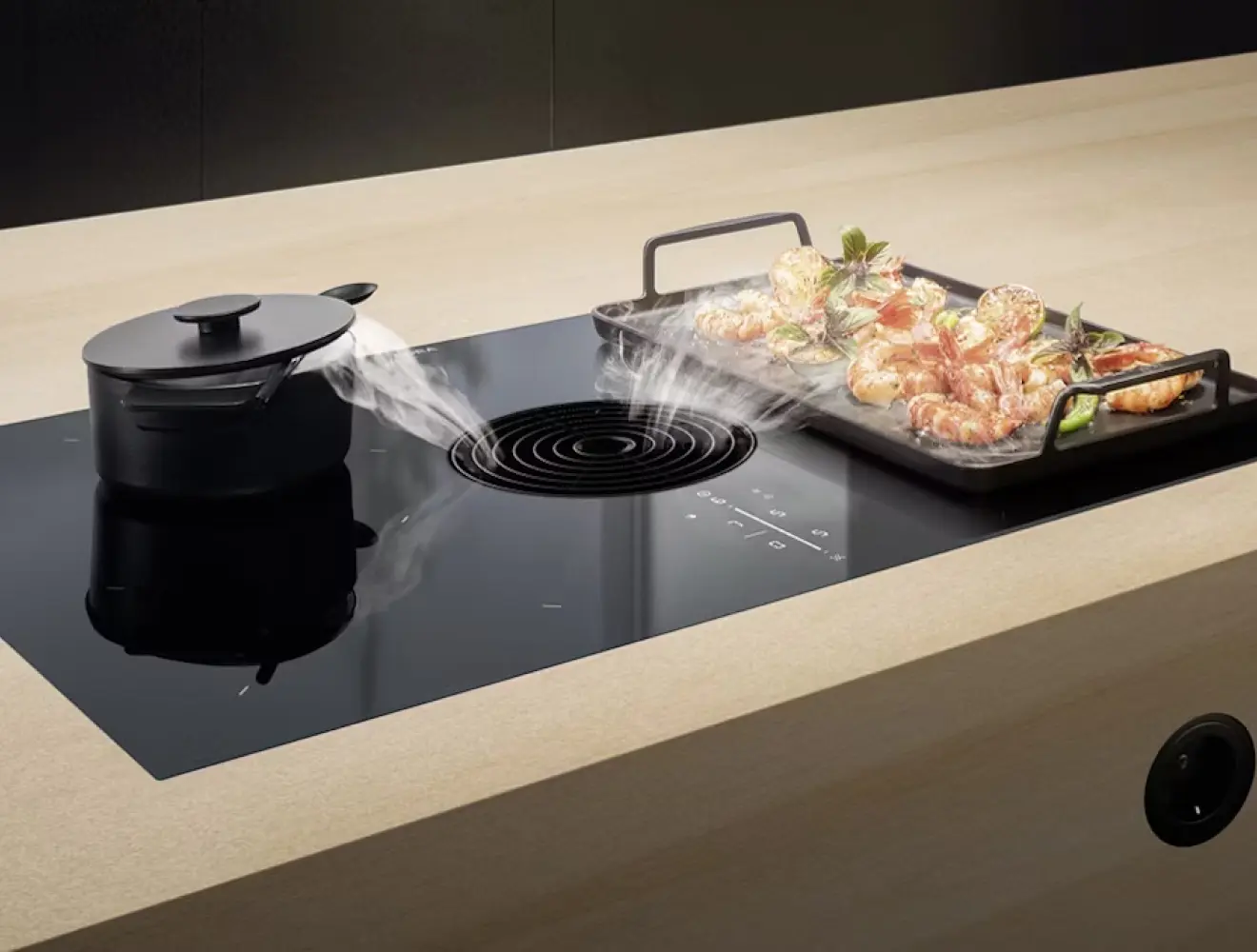 In een Japandi keuken wordt vaak gebruik gemaakt van inbouwapparatuur om een strak en minimalistisch uiterlijk te behouden. Een inductiekookplaat met afzuiging en een Quooker kraan zijn populaire keuzes vanwege hun functionaliteit en stijl. Accessoires zoals organische vazen, houten snijplanken, en bamboeplanten voegen een natuurlijke serene schoonheid toe aan de keuken zonder de minimalistische sfeer te verstoren. Japanse elementen zoals een traditionele theeservies of een bonsaiboom kunnen ook worden toegevoegd om de Japandi-look te versterken.