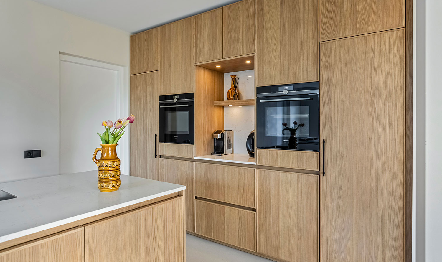 Duurzaamheid is volgens Daniëlle geen tijdelijke trend meer. “Consumenten verwachten dat hun keuken duurzaam is geproduceerd”, vertelt ze. “Fabrikanten spelen daarop in met gerecyclede materialen en innovatieve afwerkingen.” Ook gebruiksgemak speelt een grote rol. “We zien steeds meer oppervlakken met anti-fingerprint coating en slimme apparatuur die het leven makkelijker maakt. Mooi, maar ook praktisch, dat is de toekomst.”