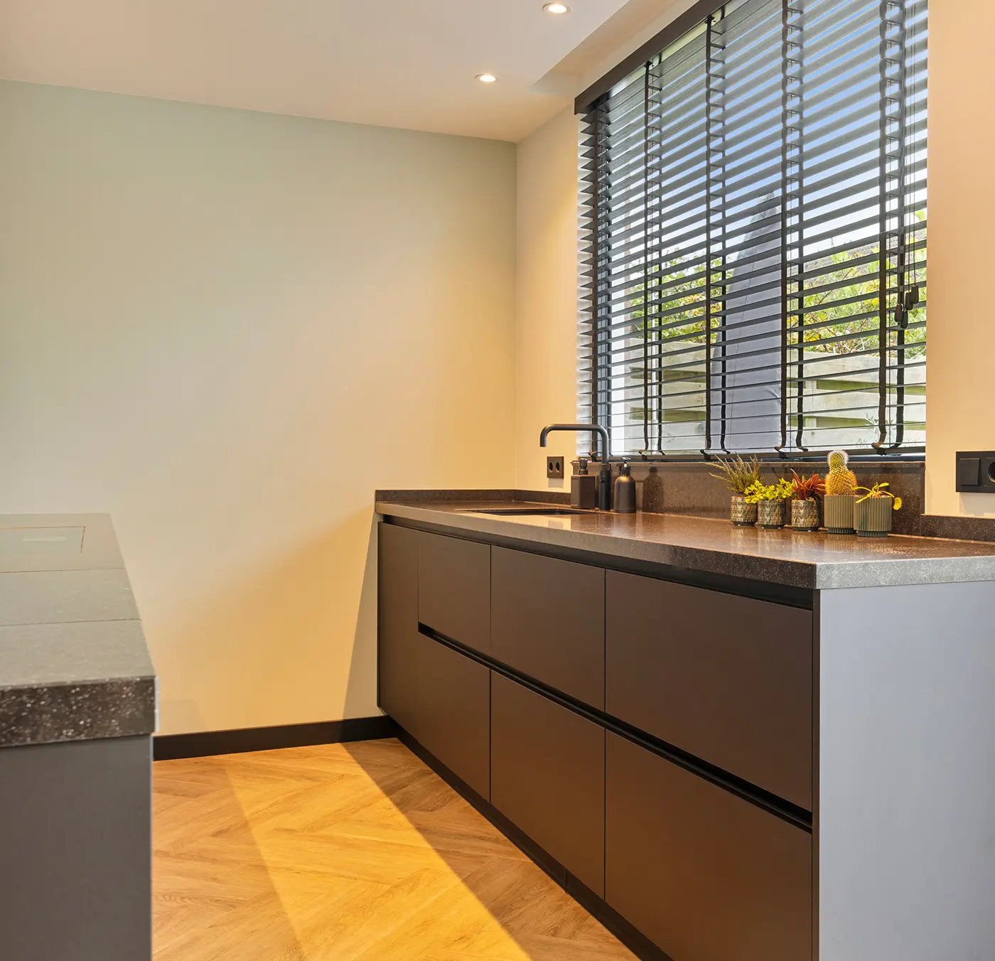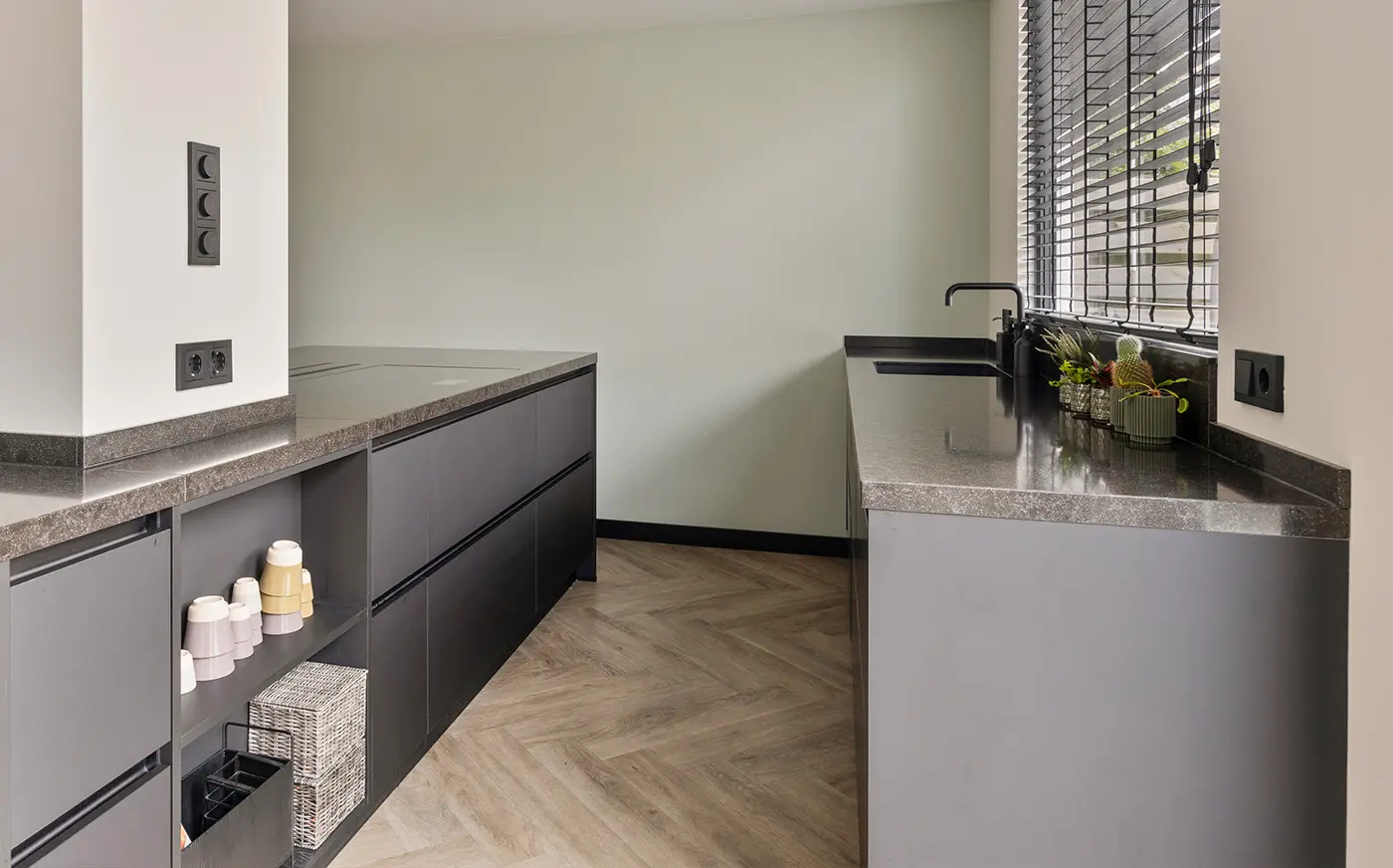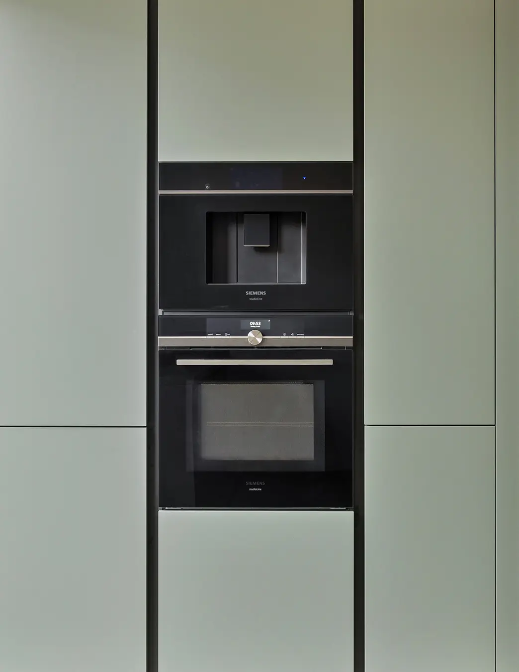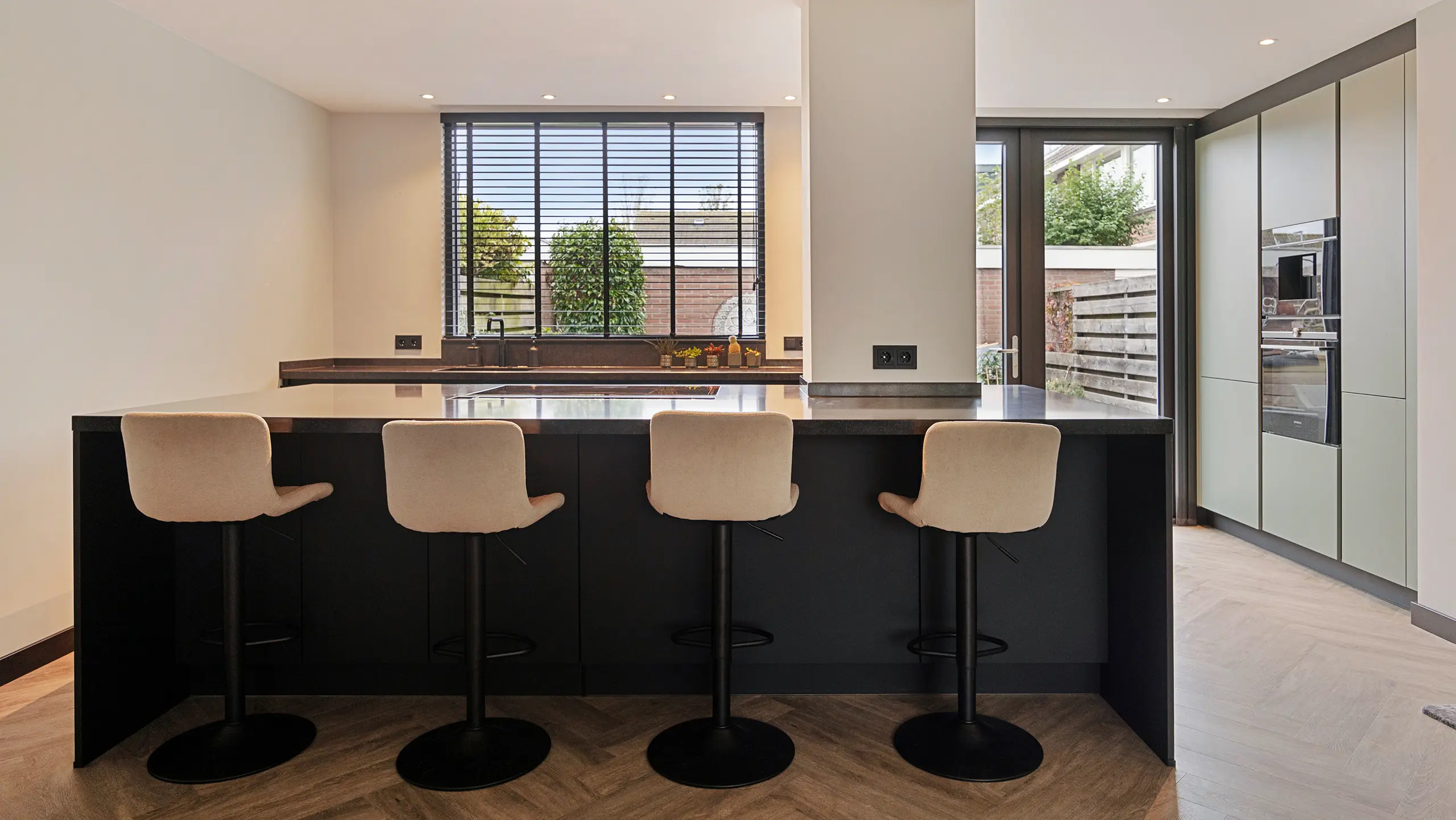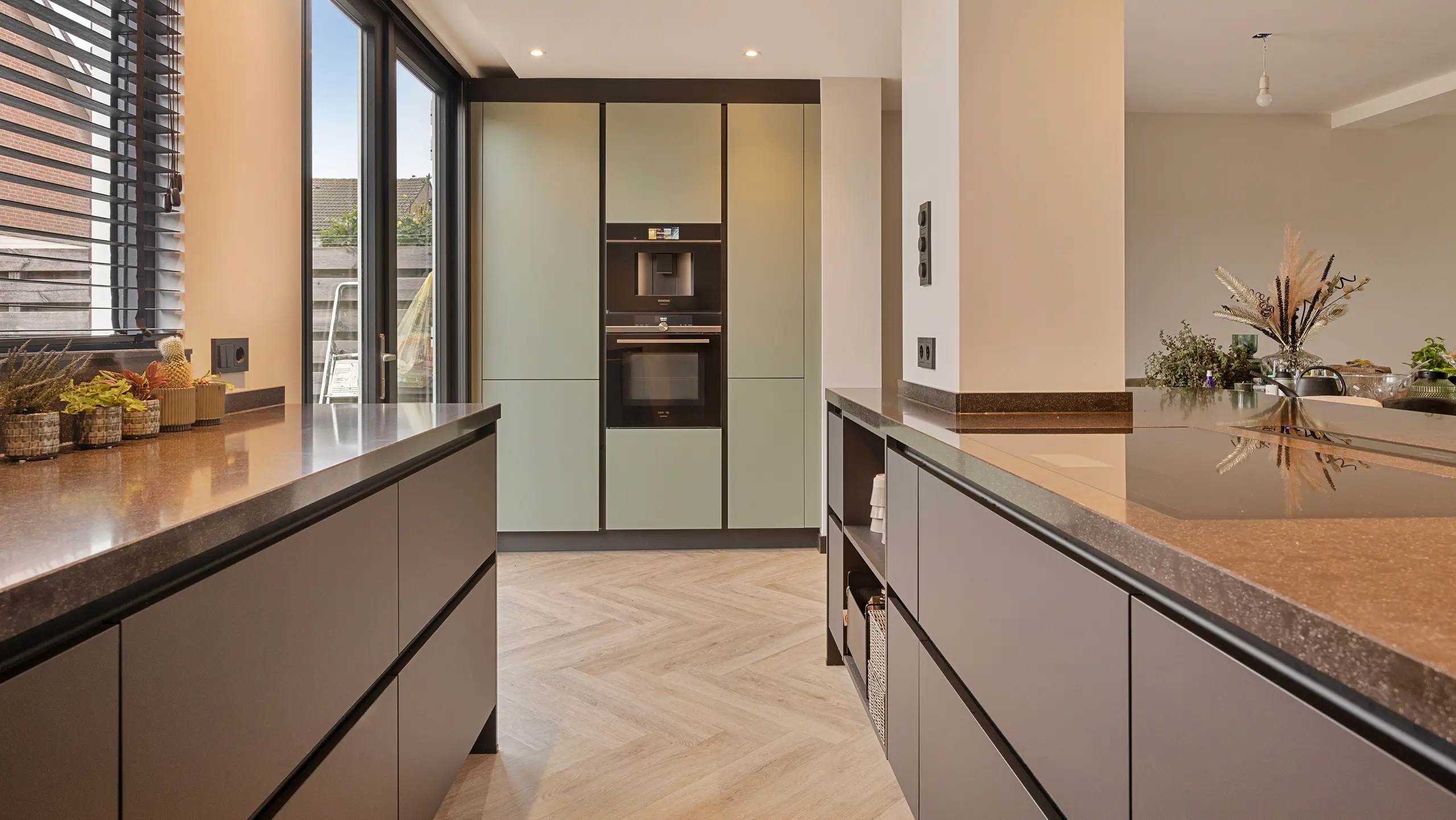 Deze prachtige keuken is een verfijnde mix van zachte groentinten en donkere accenten. Het ruime kookeiland met bargedeelte biedt een ideale plek om te koken, te werken of gezellig samen te zijn. De strakke lijnen en royale werkbladen creëren rust en overzicht, terwijl topkwaliteit apparatuur van Siemens zorgt voor gemak en betrouwbaarheid. Een stijlvolle keuken waarin design en functionaliteit perfect samenkomen.