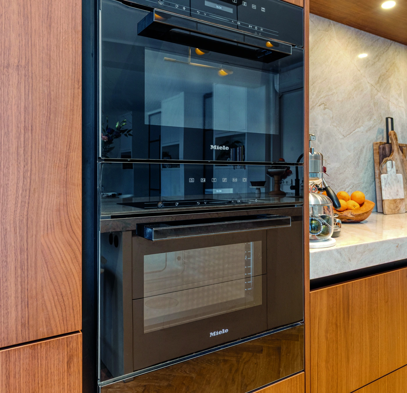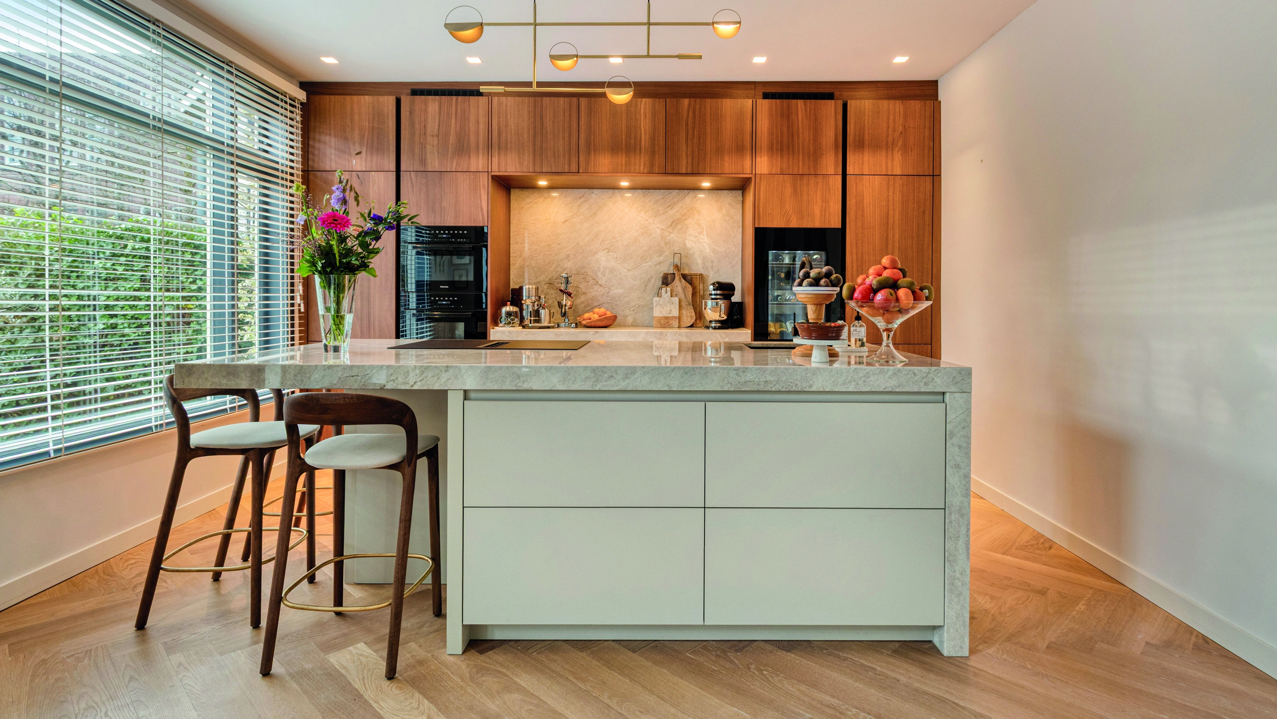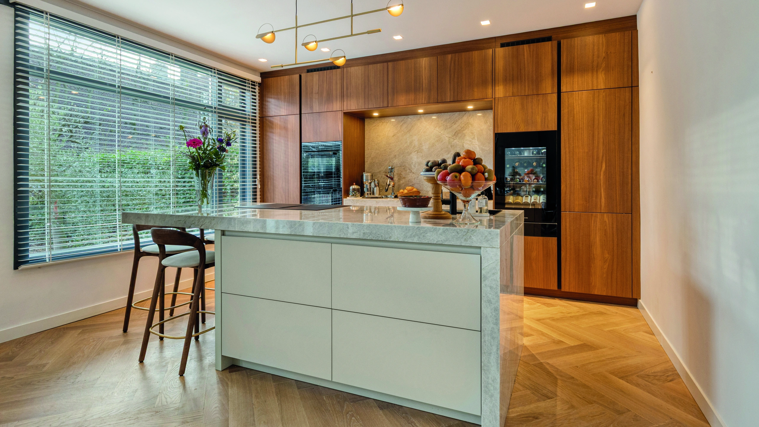 Deze keuken straalt warmte en elegantie uit. Natuurlijke houttinten, een royaal kookeiland en verfijnd natuursteen vormen het hart van de ruimte. Slimme inbouwapparatuur, zachte verlichting en een open indeling maken koken, leven en samenzijn stijlvol en comfortabel voor elke dag.