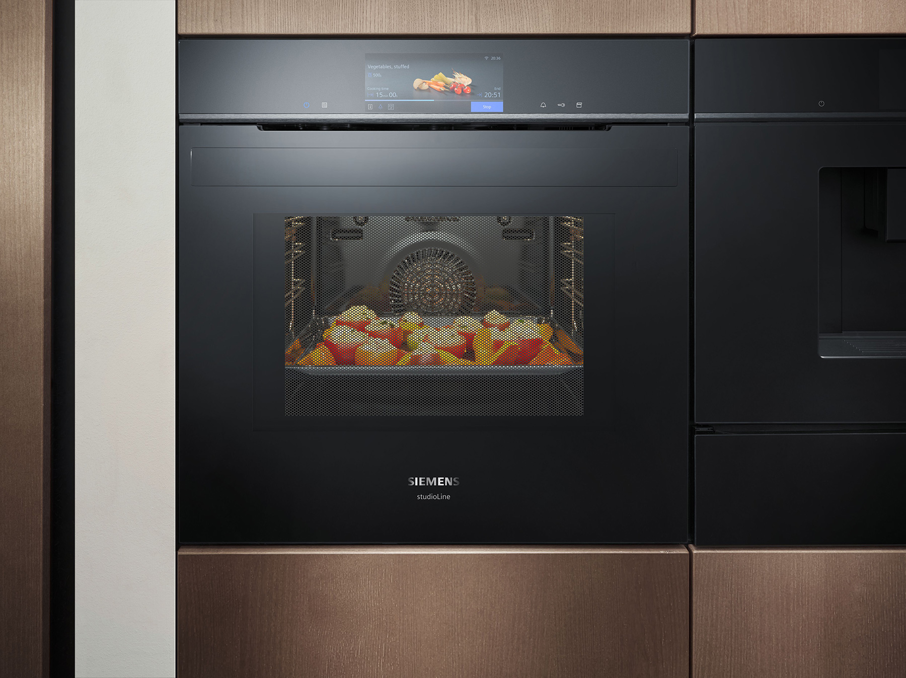 Gaar met stoom, rooster met de hetelucht-functie of combineer beide met een Siemens bakoven met stoom. Dankzij de innovatieve samenvoeging van stoom en hete lucht is de oven niet alleen ideaal voor vlees, vis en groente, maar ook voor brood, cake en gebraad. Door te stomen blijven smaak, structuur, vitaminen en voedingsstoffen behouden. Dankzij fullSteam Plus kookt u ook nog sneller. En met de stoomovens met vaste wateraansluiting heeft u altijd vers kraanwater om mee te stomen en hoeft u nooit meer het waterreservoir handmatig bij te vullen.
