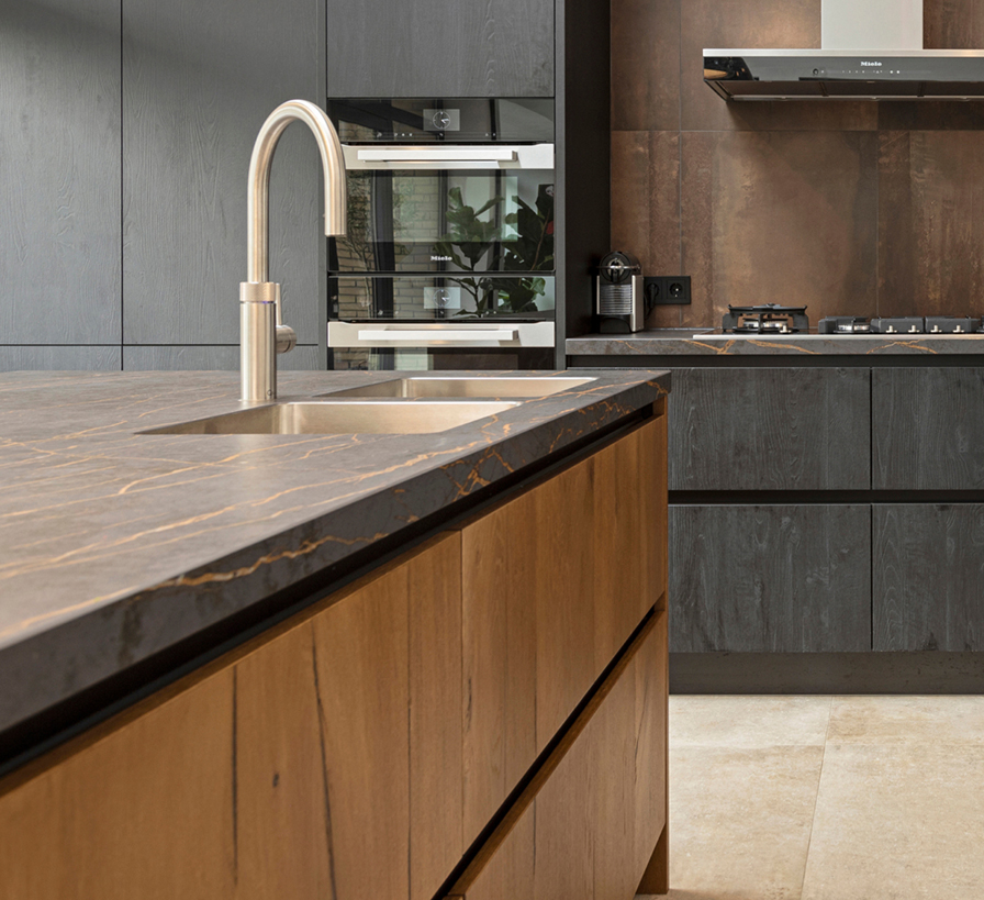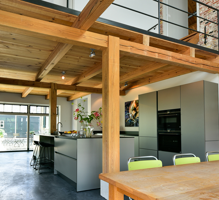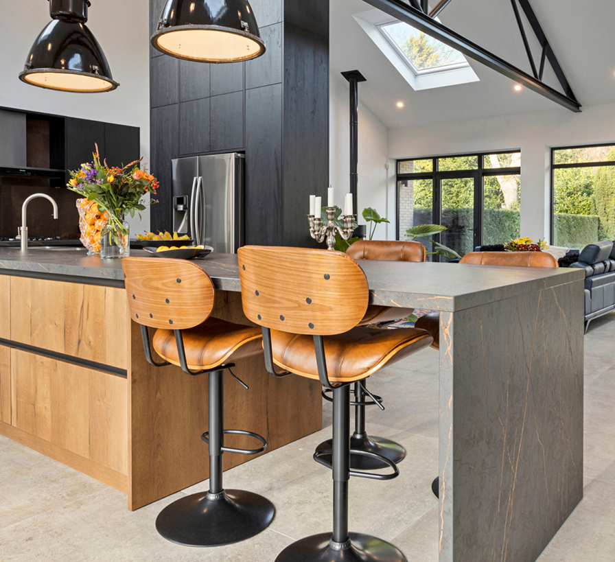Industriële keukens onderscheiden zich door hun stoere en functionele ontwerp met robuuste elementen zoals bakstenen muren, metalen balken en stalen rekken. Vaak in een combinatie met duurzame materialen zoals onbewerkt hout, roestvrij staal en beton. Het kleurenschema combineert grijstinten, zwart, en natuurlijke kleuren met vintage accessoires voor een tijdloze, veelzijdige uitstraling. Deze keukens zijn ideaal voor wie houdt van een ruw maar stijlvol design, waarbij functionaliteit en ruimtelijkheid centraal staan. Perfect om uitgebreid in te koken, karaktervol in zijn uitstraling en uitnodigend voor lange gezellige avonden.