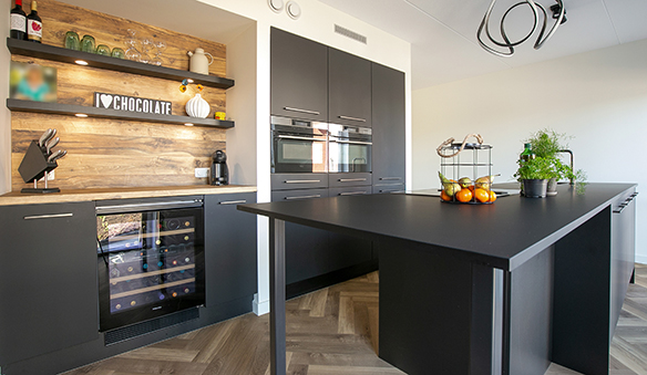 Sam (47) en Miriam (41) houden van de goede dingen in het leven: design, wijn, koffie en lekker eten. “De wijnklimaatkast is een geweldige aanschaf.”