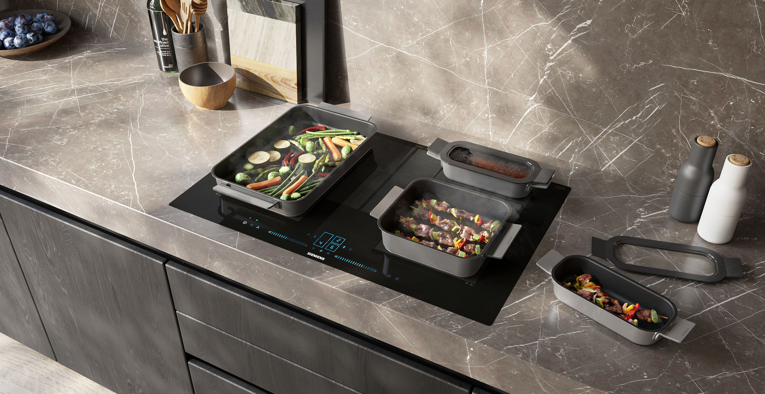 Stuur receptinstellingen direct vanaf uw telefoon naar uw oven. Laat uw vaatwasser sneller werken met één druk op de knop, waar u ook bent. Of kook op een flexinductie-kookplaat. De kookplaat die automatisch het aantal, de grootte en de vorm van uw kookgerei detecteert en zich daarop aanpast. Verplaatst u pannen op de kookplaat? Dan verplaatsen de kookinstellingen mee. Met de intelligente keuken van Siemens kookt, plant en leeft u slimmer dan ooit.